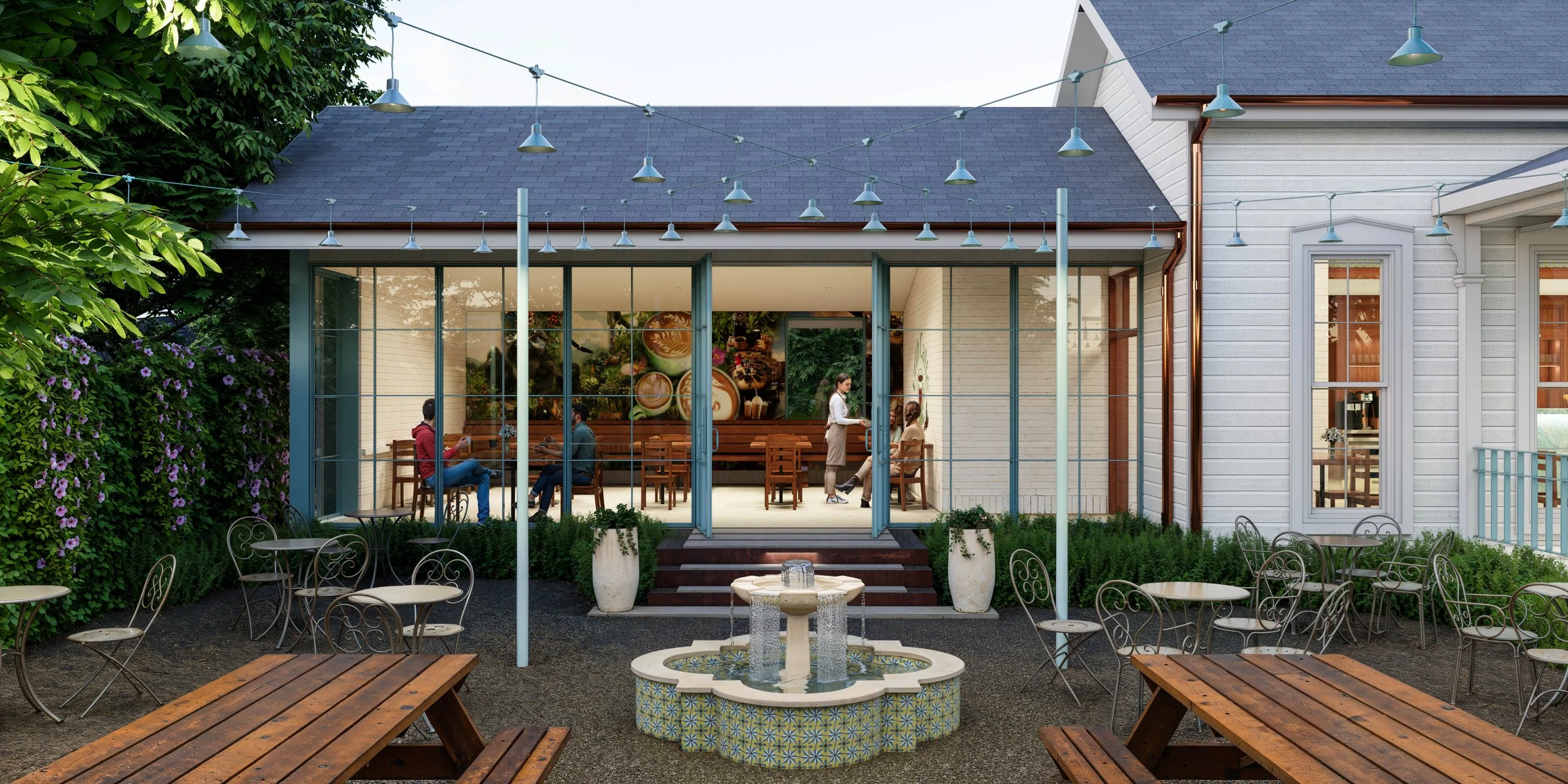 Urth Caffe Austin is a restaurant and cafe serving heirloom organic coffees and teas. This coffee shop and brunch restaurant will be located at 1010 East Cesar Chavez Street and maintain the historic character of a 1900s house while upgrading the structure to provide a safe, comfortable environment for patrons and employees. The architectural design includes preservation of the historic facade, maintaining the historical house’s significant architectural details and scale, while adding respectful, modern additions and upgrading the structure and building systems.